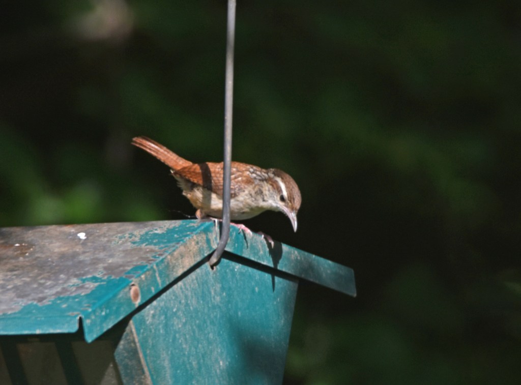 Today I got a chance to observe the balcony birds from my Charlotte place. I observed VERY CLOSELY. Of course one reason was because I have to keep the squirrels from sampling the tray feeder “buffet” and to keep to their cracked corn and peanuts on the bottom of the feeding station.