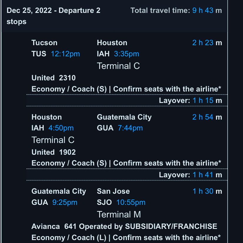 Well i chose to treat my friend Sandi, a 72 year old retired academic success counselor to a trip to Costa Rica. I had not been out of the country since the pandemic and since my son’s passing. I figured a trip with a friend who knew my son was good for me. Christmas is a hard holiday for me, so I chose that day for us to leave.