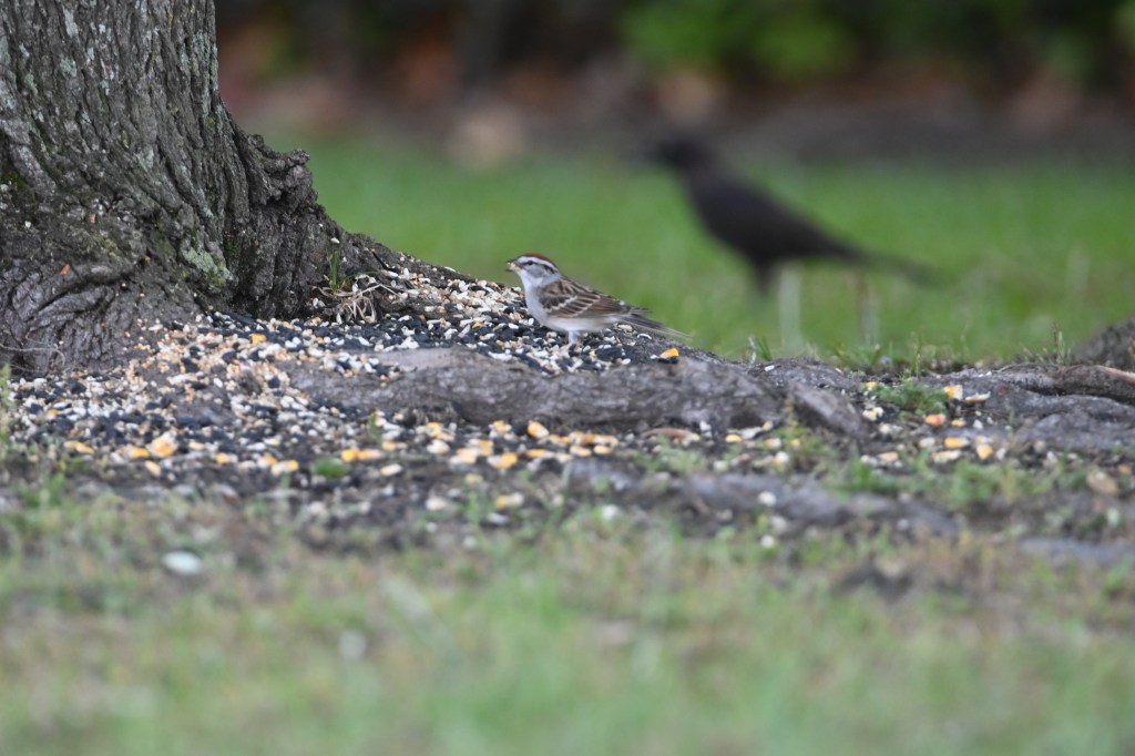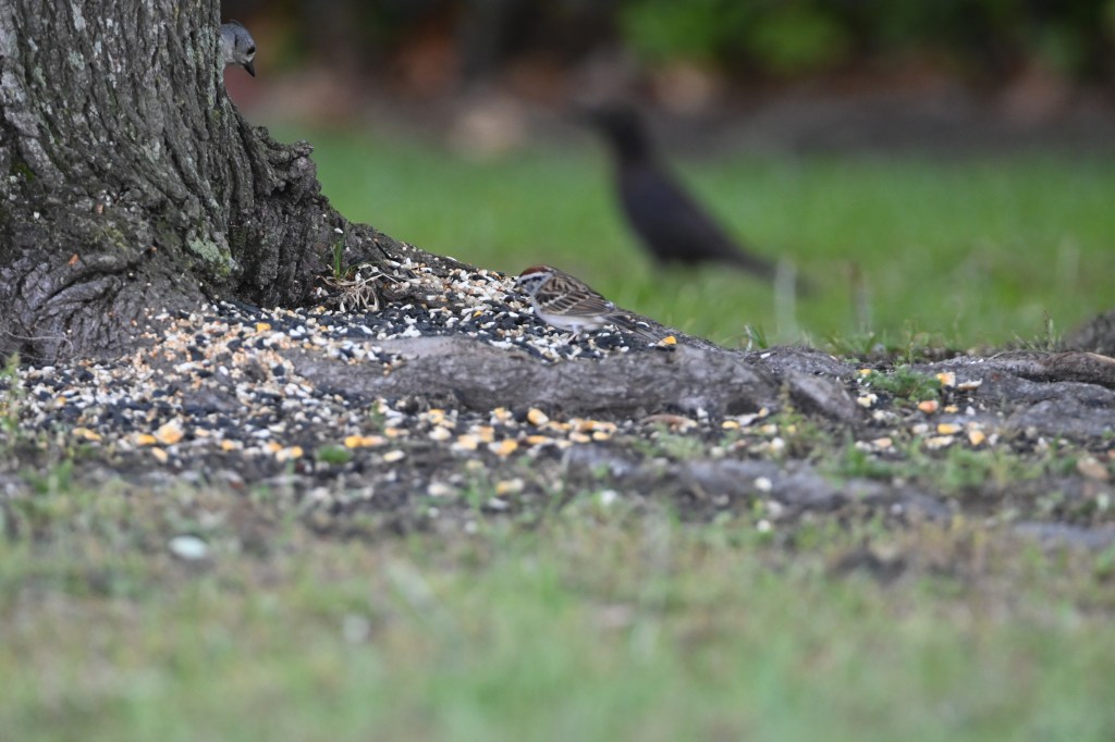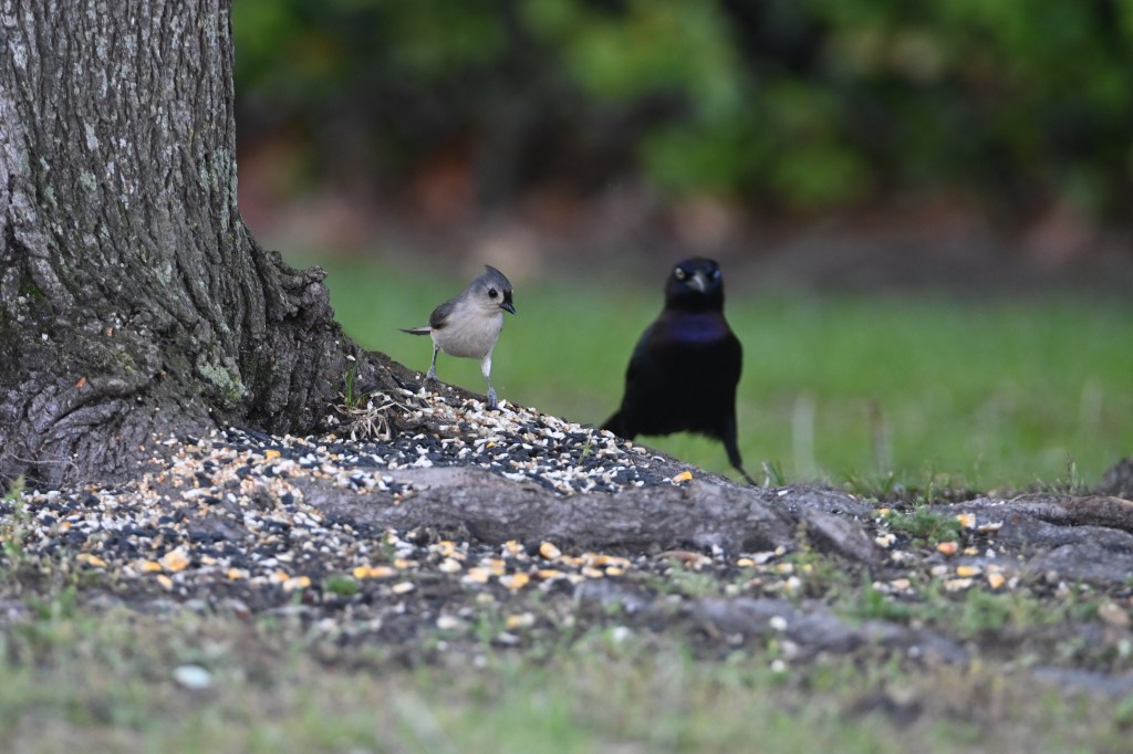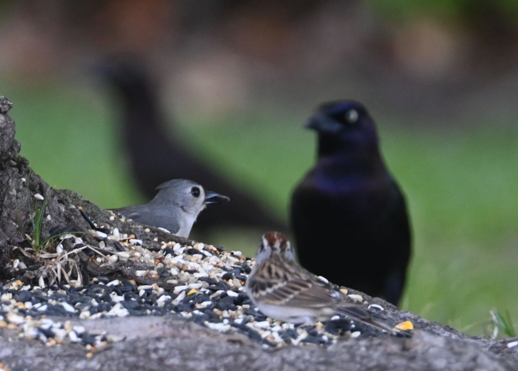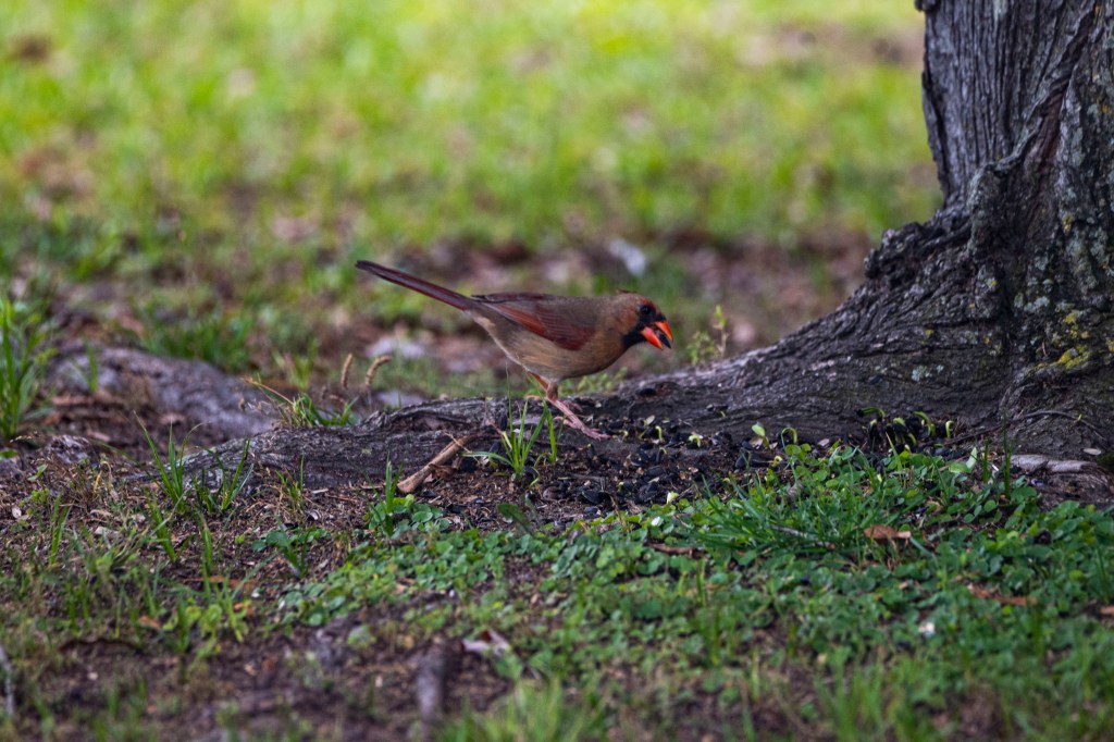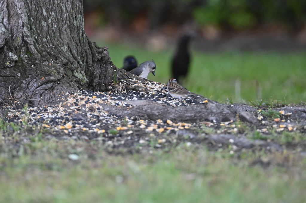 Today, I witnessed a beautiful congregation of birds at the base of the Red Maple Tree. It was heartwarming to see the camaraderie among them, from the striking Common Grackles to the cheerful Tufted Titmice and spirited Carolina Chickadees. The Mournful Doves cooed softly, the Chipping Sparrows flitted about, and the vibrant Northern Cardinals stood out against the greenery. Brown Thrashers were busy thrashing across the lawn in search of juicy crane fly larvae, their playful energy infectious.