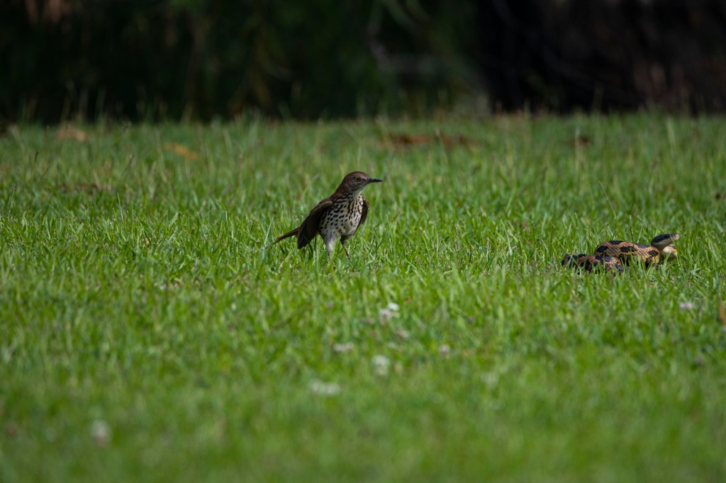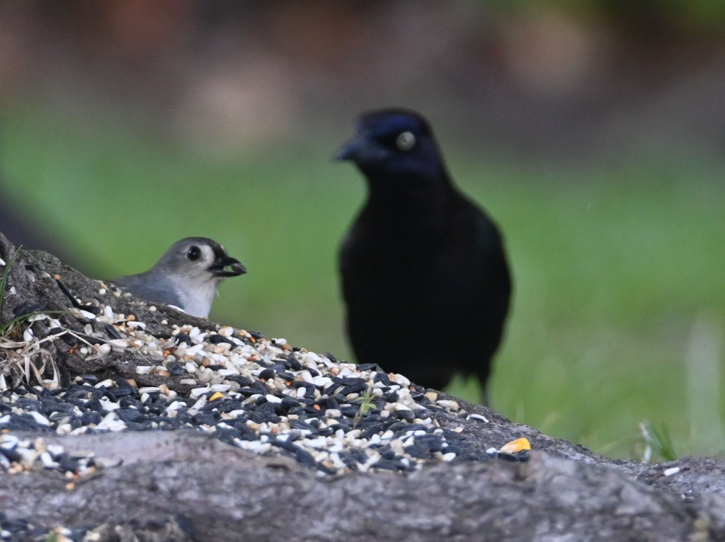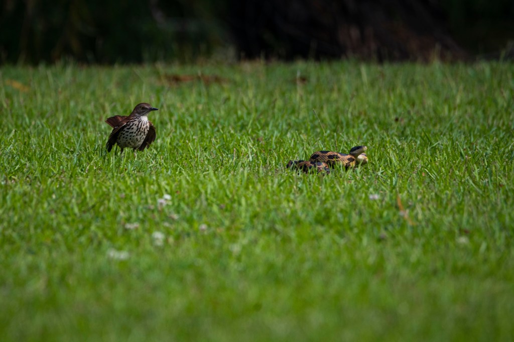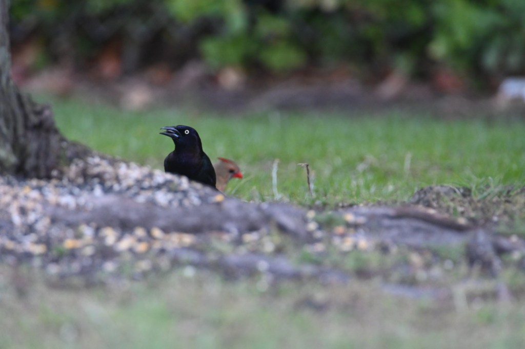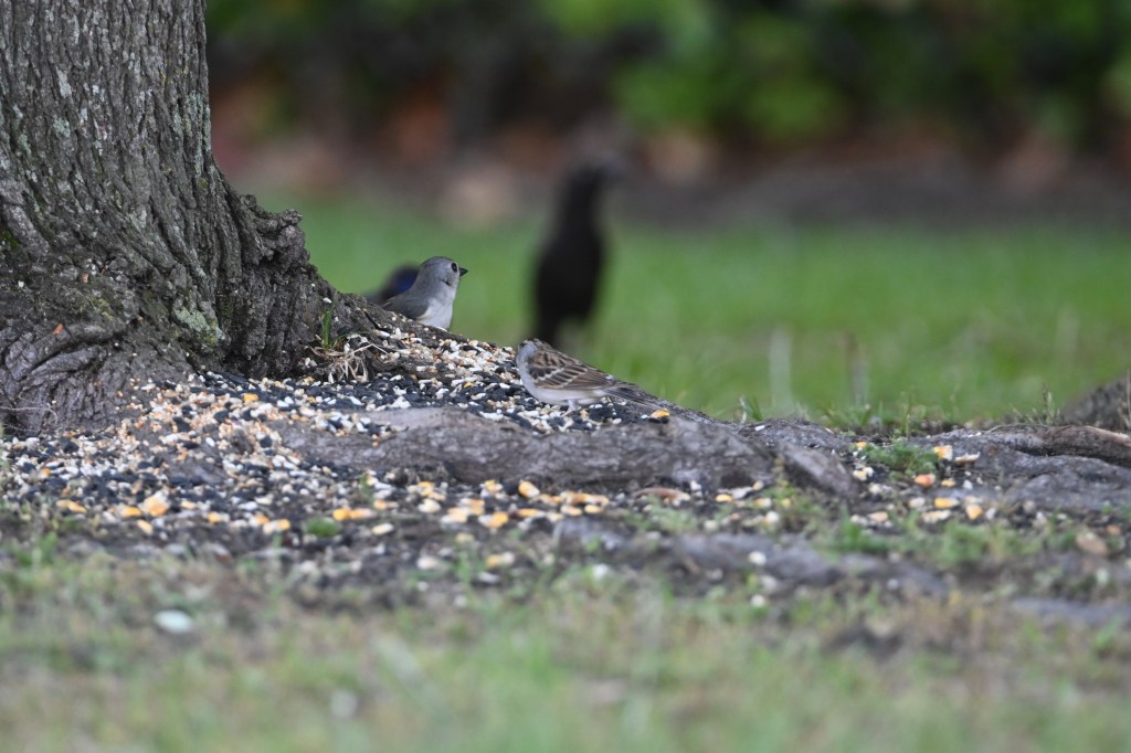 Today, I witnessed a beautiful congregation of birds at the base of the Red Maple Tree. It was heartwarming to see the camaraderie among them, from the striking Common Grackles to the cheerful Tufted Titmice and spirited Carolina Chickadees. The Mournful Doves cooed softly, the Chipping Sparrows flitted about, and the vibrant Northern Cardinals stood out against the greenery. Brown Thrashers were busy thrashing across the lawn in search of juicy crane fly larvae, their playful energy infectious.