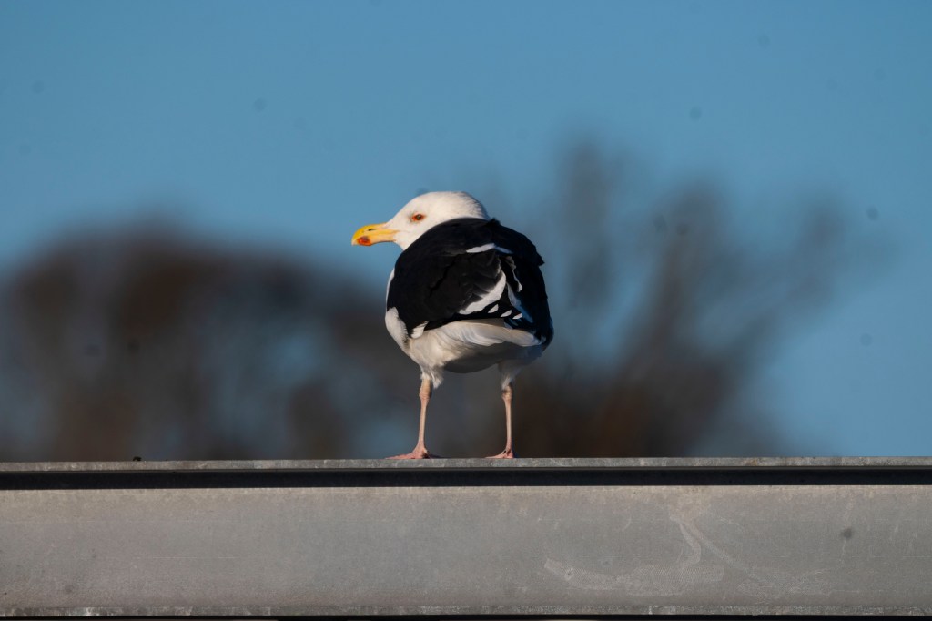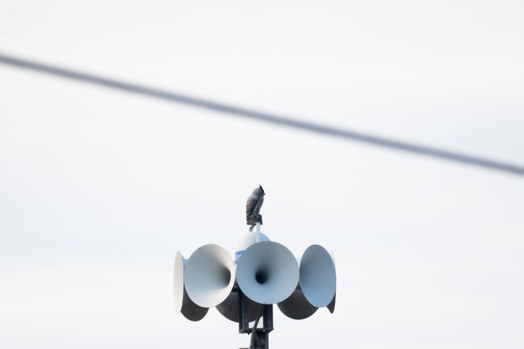 I noticed a blackish figure on a sign. I took my camera and zoomed in and THERE IT WAS!