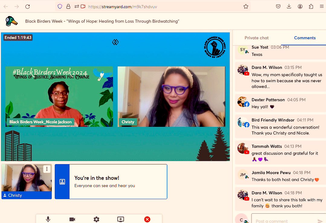 I had the pleasure of being invited to Black Birders Week programming this past May! Nicole Jackson, ecological and wildlife education extraordinaire, contacted me, and I was glad to accept!