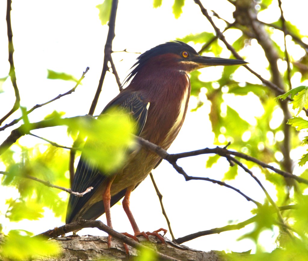 The reason I saw it that day was because I was following an American Robin and I looked up and there the Green Heron as in the tree. I did not know what it was at first. I thought maybe it was some kind of cormorant.